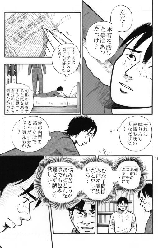W杯で久々の優勝を果たしたひな子の様子がおかしいと思った跳人は自分がフライト中に幻影を見る事をコーチ黒津がひな子本人に喋ったのではないかと疑い、「はるにれ」の会長金子と江田の勧めもあって黒津に電話で尋ねてみる事に…黒津の信じられない行動に跳人が傷つき、つい本音をぶつけた時、黒津の口から今までに知り得なかった言葉が発せられる